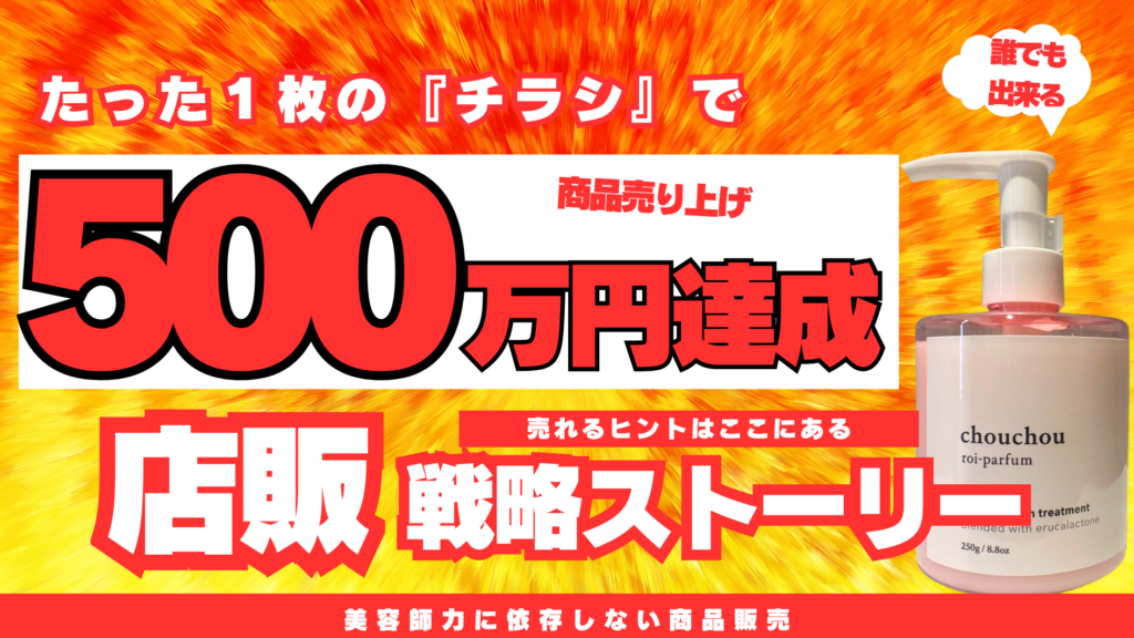 マニュアルや仕組みゼロでの商品販売 弊社では今までシャンプートリートメントなどの商品を販売する際に『仕組みとマニュアル』を用いて購入していただくことが多く、その実績も出ていました。 今回ご紹介する内容は仕組みもはマニュアルも一切使わずに1枚... -